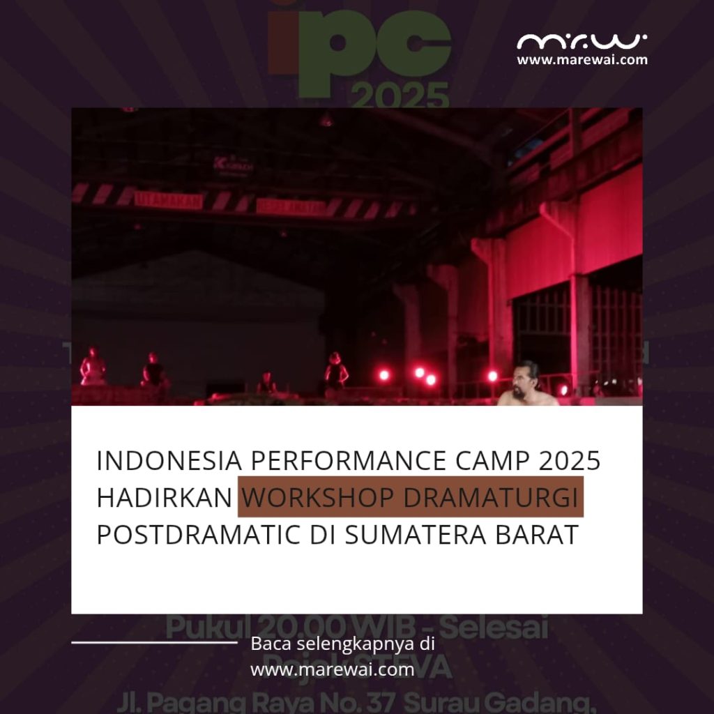 Setelah sukses menyelenggarakan Indonesia Performance Camp (IPC) 2024 dengan menghadirkan seniman Butoh Mutsumi-Neiro dari Jepang–Yugoslavia, IPC 2025 akan kembali digelar pada 9–11 November 2025 di Fabriek Padang dan Pustaka Steva, Sumatera Barat. Tahun ini, IPC mengangkat tema “Praktik Dramaturgi Postdramatic dalam Pertunjukan Kontemporer”, sebuah kerangka kerja yang mengajak performer menelusuri tubuh sebagai arsip hidup—ruang pertemuan antara memori personal, tradisi, pengalaman sosial, dan gagasan artistik.