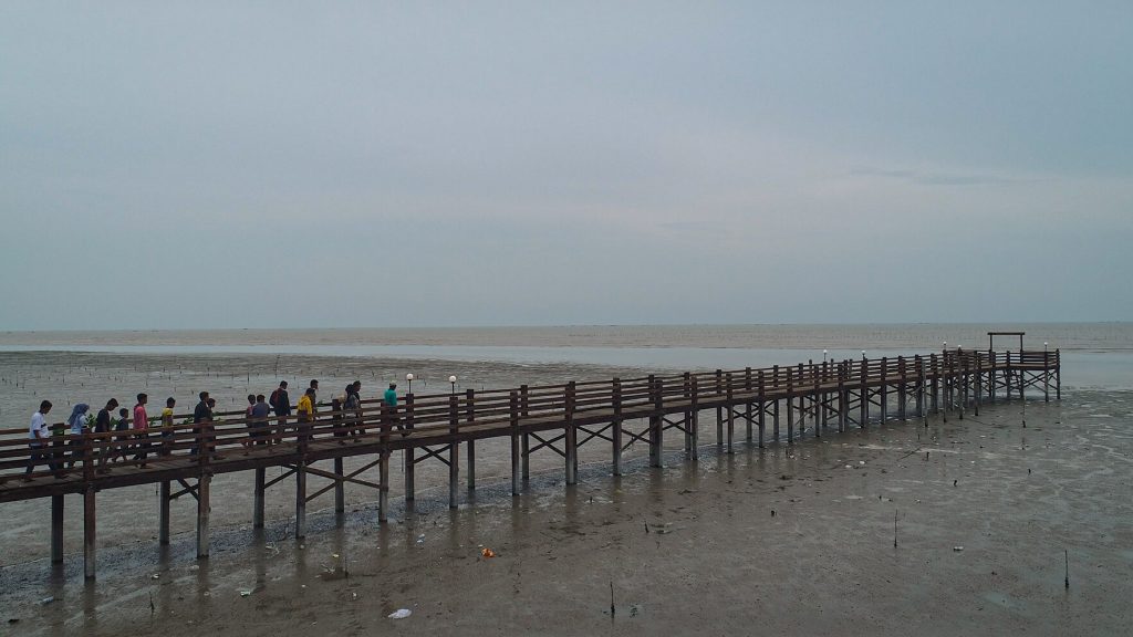 Semenjak jembatan mangrove jalan produksi perikanan ini dibangun, apalagi setelah diresmikan di awal Maret 2021 yang lalu, tempat ini ramai mendapatkan kunjungan dari masyarakat yang ingin berwisata menikmati indahnya Pantai Sejarah dengan bentang alam hutan mangrove-nya.