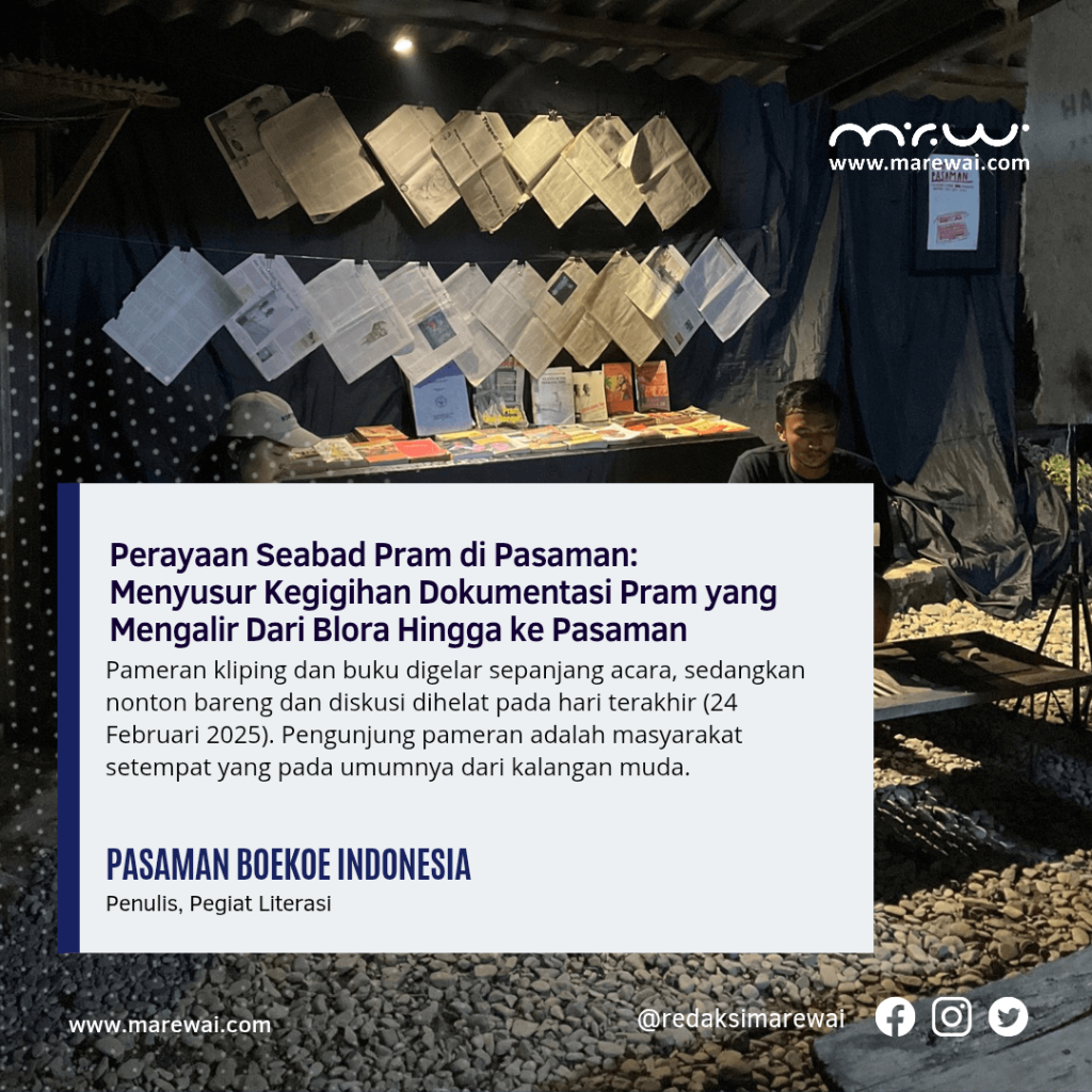“Selama tiga hari, kita menggelar 4 kegiatan yaitu:Pameran kliping, pameran buku, nonton bareng dan diskusi tentang Pram,” terang Mulyadi Putra (Komunitas Rumah Mentari)